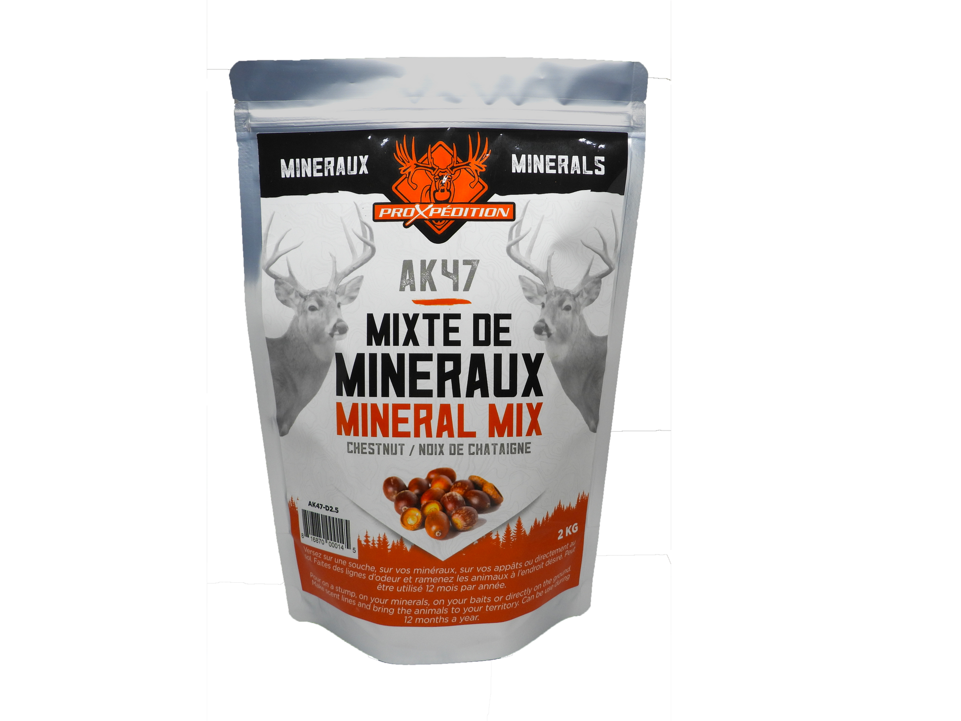 Discover this powerful blend of complete minerals designed specifically for deer. This high-quality product meets all Proxpédition standards. AK47 for Deer is formulated for both females and males, containing essential minerals that stimulate lactation and fertility, optimizing the quality and quantity of milk produced by does. As a result, fawns will benefit from improved health.
