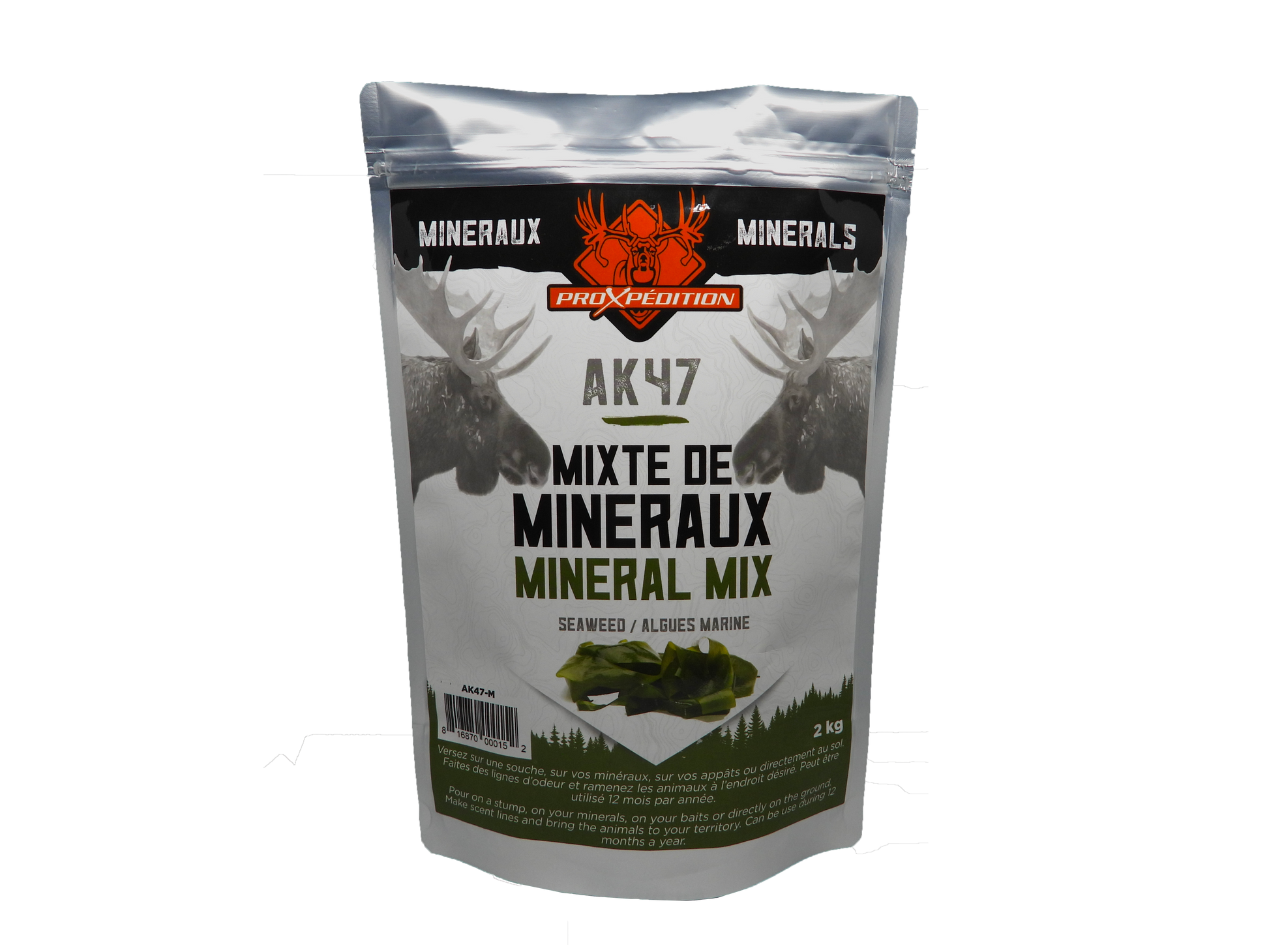 Discover this powerful blend of complete minerals specially designed for moose. AK47 for Moose meets the high standards of all Proxpédition products and is formulated for both cows and bulls. It contains essential minerals that stimulate lactation and fertility, optimizing the quality and quantity of milk produced by cows, resulting in healthier young moose.