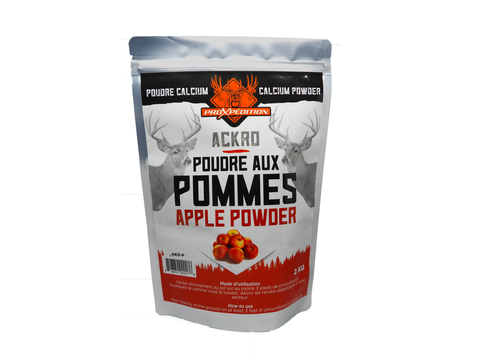 Create an addiction to the delightful taste of apple with Ackro Apple Powder. Big game in your area will love it! This blend of calcium and mineral powder features the flavor of fresh apples. To use, simply pour it directly onto the ground in a circumference of at least 3 feet, and sprinkle it on the foliage of nearby trees to establish a natural feeding site. Watch as the effects of this enticing flavor cultivate a dependency among the big game in your area.
