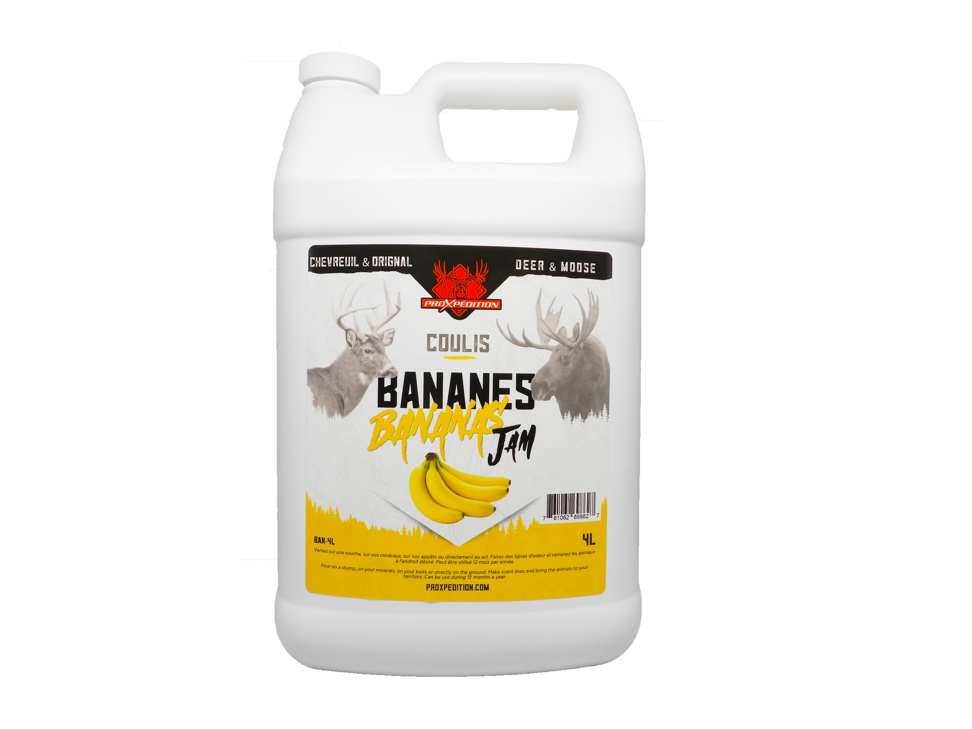 The most powerful attractant on the market with a strong banana odor and taste for all game. Can be used directly at your bait site or as a scent line to draw animals back to your location.