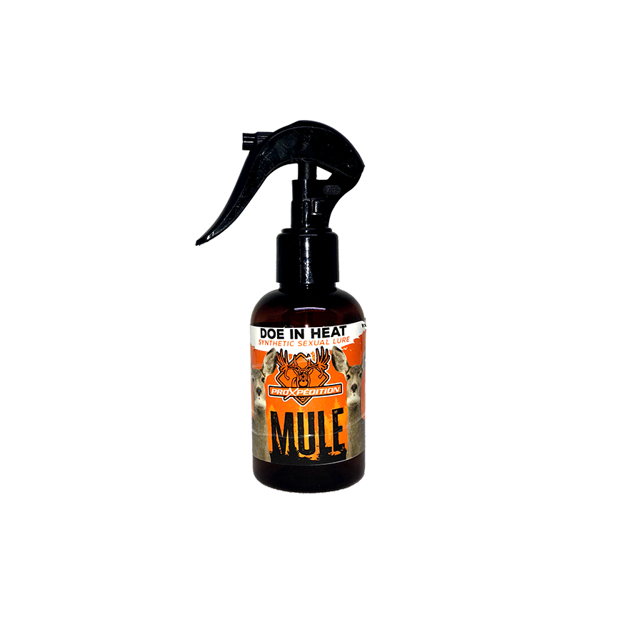 Excite the bucks in your area with this Mule Deer Doe in Heat Lure. Strong, vigorous bucks will visit your territory more frequently, drawn by the scent of a doe in heat. This lure works over long distances, attracting bucks eager to meet the doe. The Doe Mule Deer in Heat Sexual Lure contains synthetic estrogen, and we recommend using it with TRIGGER for the best results. For optimal use, find scrapes on the ground and apply 15 sprays to them. You can also create scent trails with this lure. The spray is highly effective on rainy days and reactivates with morning dew or evening humidity.