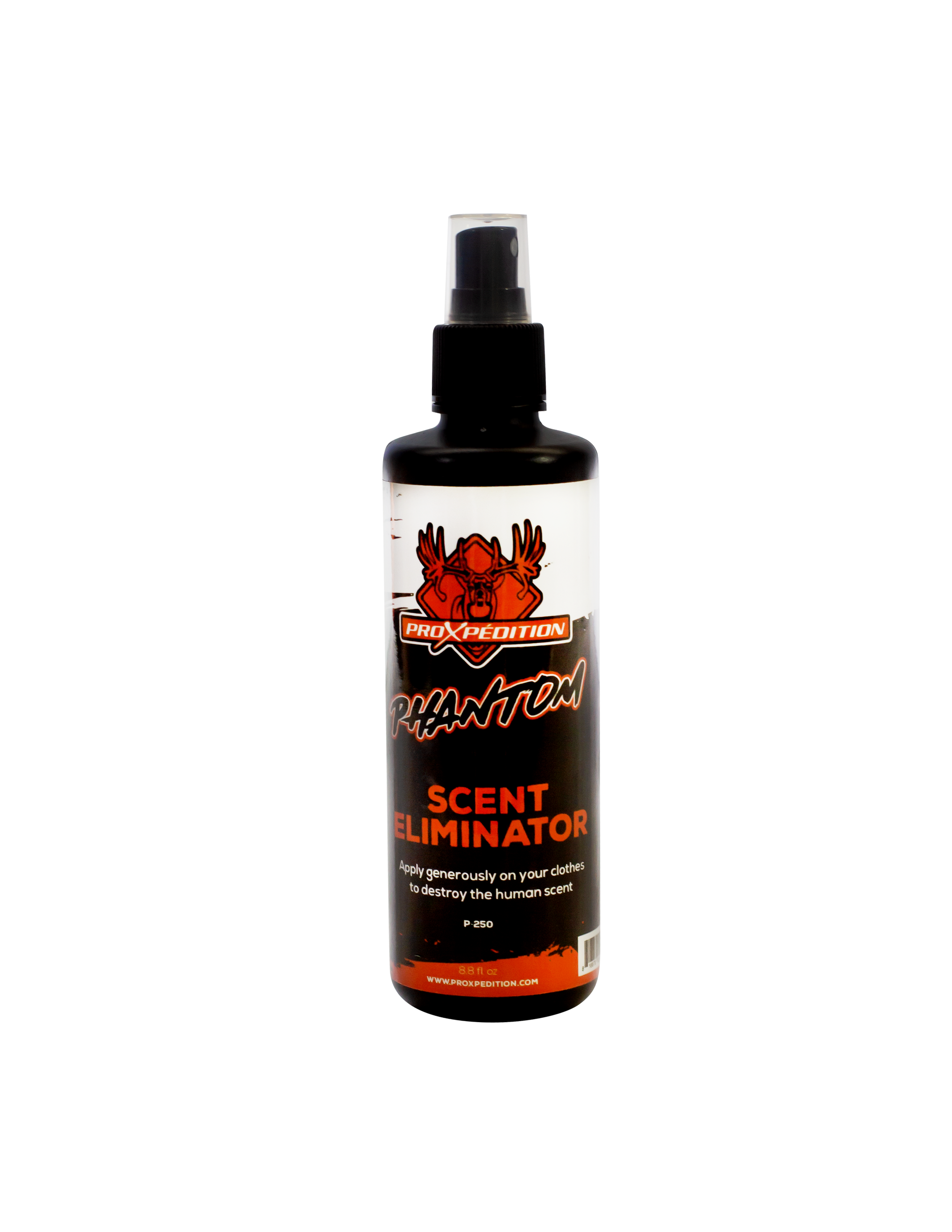 Go undetected with Proxpedition’s Phantom Scent Eliminator. Animals easily recognize natural scents, but our lab-developed formula neutralizes the odor-causing molecules that could give you away. Phantom is easy to use—just spray it on your clothing to prevent detectable odors. When applied thoroughly, it penetrates your gear, providing all-day odor control. Once you experience its effectiveness, you won’t want to hunt without it.