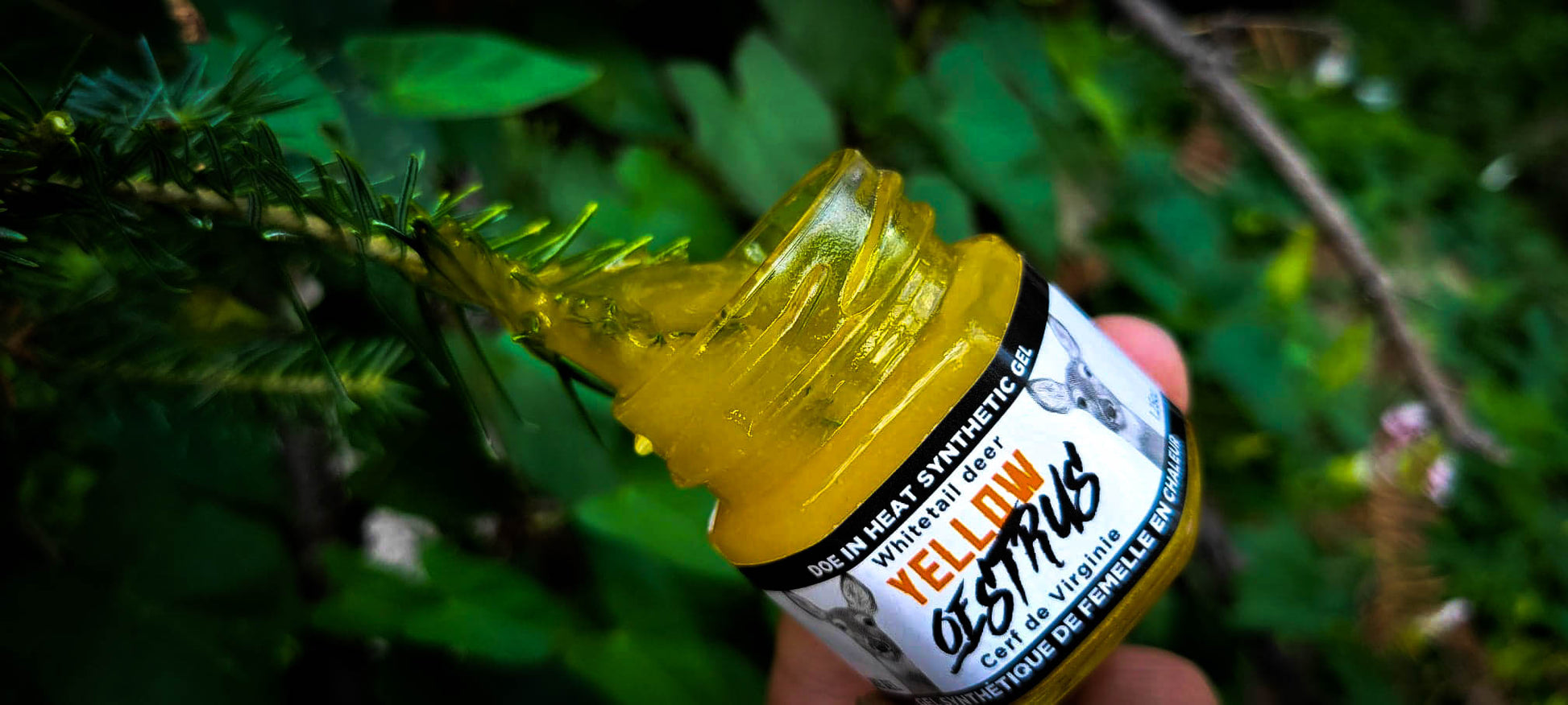 Synthetic gel mixture of doe in heat, enriched with full synthetic estrogen. This rain-resistant product maintains its strong scent under all conditions. Apply Yellow Oestrus in your shooting lanes to capture the attention of your targets.